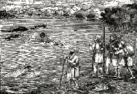 «If a wolf or any wild animal attempts to hurt the flock you should pick up big stones like this» - suiting the action to the word - «and throw a few such at him, and he will be afraid and go away.»