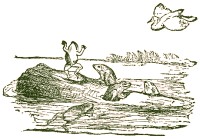 The Frogs were terrified at the splash occasioned by its fall and hid themselves in the depths of the pool. |