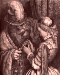 En otro tiempo vivía un hombre que tenía hermosas casas en la ciudad y en el campo, vajilla de oro y plata, muebles muy adornados y carrozas doradas;